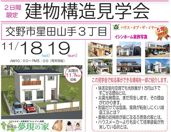 11月18日(土)、19日(日)に構造見学会を開催します。